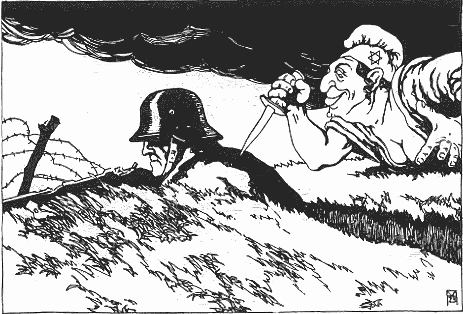 После поражения Германии в Первой мировой войне распространились теории заговора о том, что евреи «нанесли удар в спину нации», подорвав военные усилия. Гитлер придерживался этого ложного убеждения, утверждая, что евреи ответственны за унижение Германии, экономический крах и политическую нестабильность.