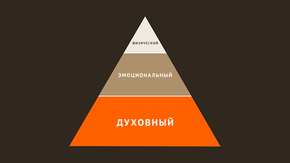 Постройте пирамиду, взяв за основу духовное, и ваши отношения будут надежными. Но переверните пирамиду, вот так…